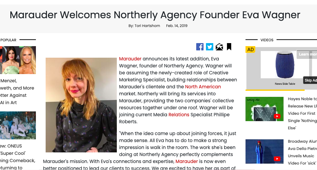 I founded Northerly Agency in 2016 in NYC, offering marketing, publicity and radio promotion services, as well as artist management, in the music industry. Northerly embraced community in its business strategy, and quickly built a large community of independent bands, artists, and music industry professionals with the intent of forming mutual support and comradery. This lead to a huge success, and Northerly was recruited to join renowned NYC based music industry marketing company Marauder in 2018. See news article.
